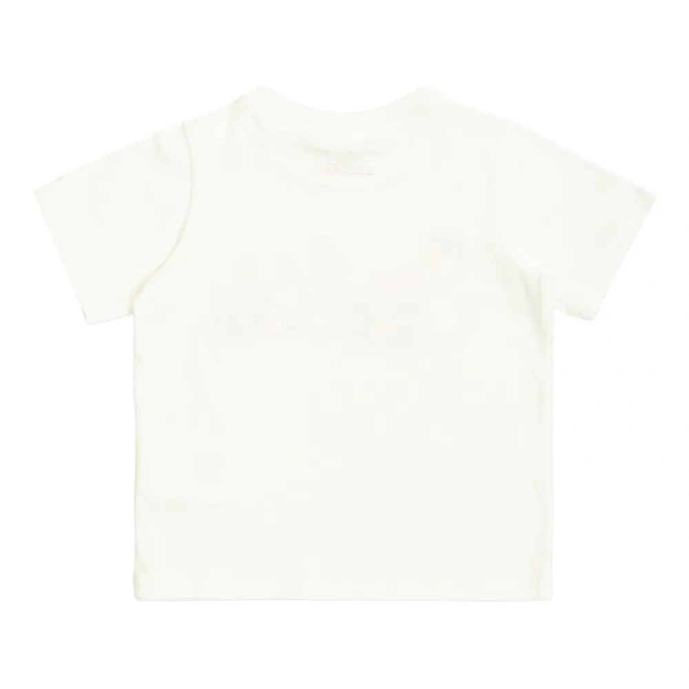 белый цвет, принт с графическим рисунком, короткие рукава, круглый вырез, застежка-кнопка на плече