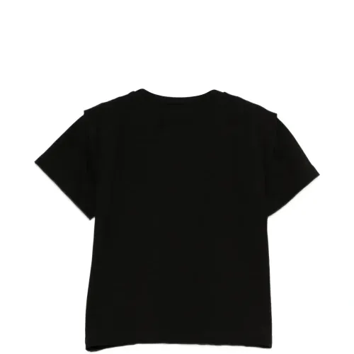 черная футболка с круглым вырезом, короткими рукавами и принтом