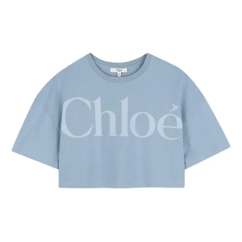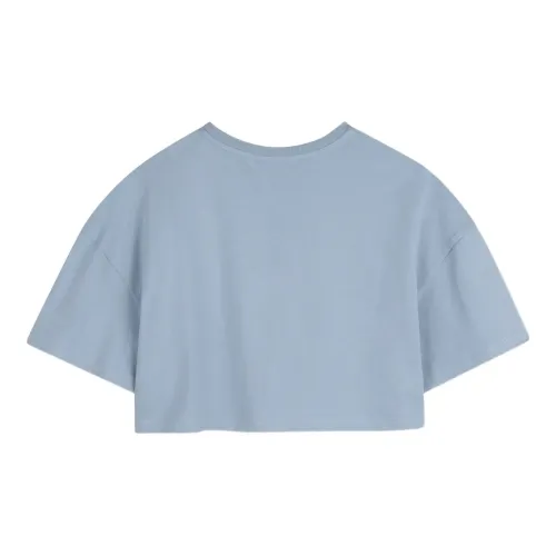 голубой хлопковый укороченный свитшот с круглым вырезом и логотипом спереди