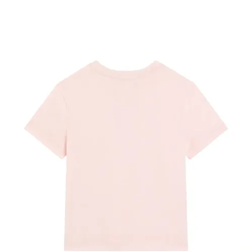 розовая футболка с графическим логотипом, круглым вырезом и короткими рукавами