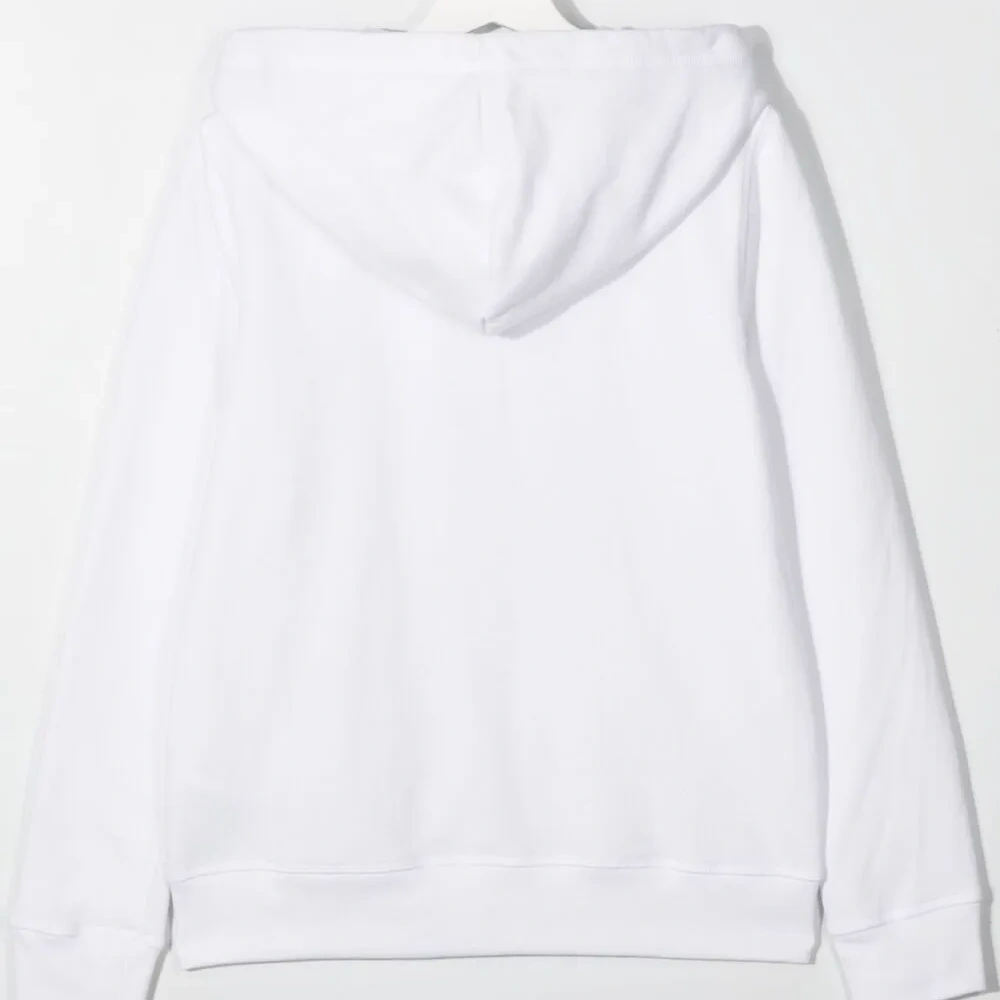 Вышитый логотип, классический капюшон, два передних кармана с листочкой, застежка на молнии спереди и длинные рукава. Цвет: белый.