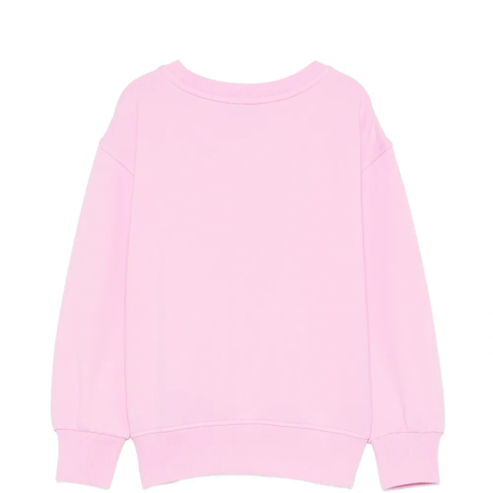 розовый свитшот с принтом вишен, круглым вырезом, длинными рукавами и ребристым краем