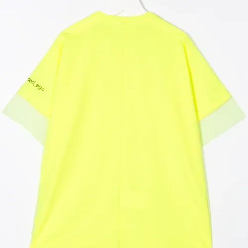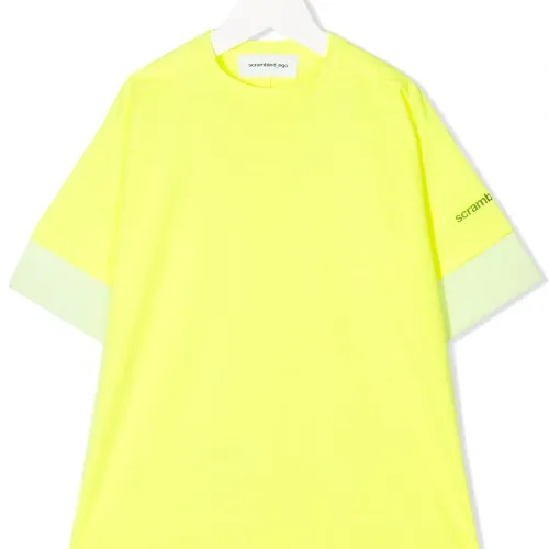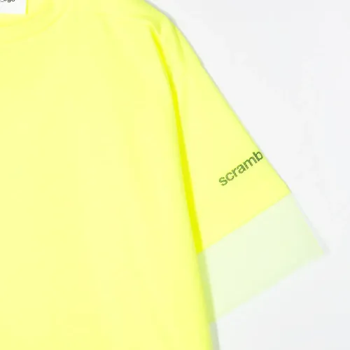 Футболка оверсайз от Scrambled_Ego. Свободный крой, контрастная вставка, круглый вырез, короткие рукава и прямой подол. Цвет: желтый.