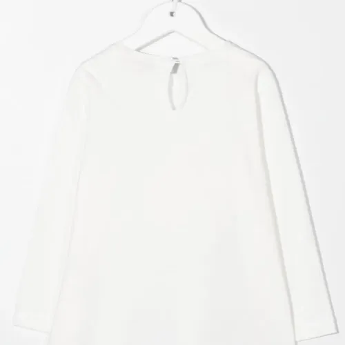 Белый, хлопок, принт на груди, круглый вырез, длинные рукава и прямой подол.