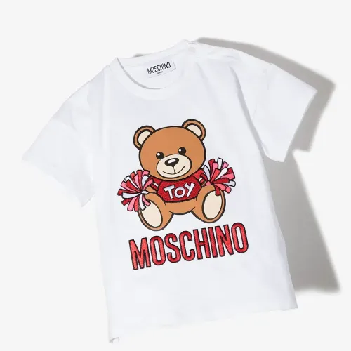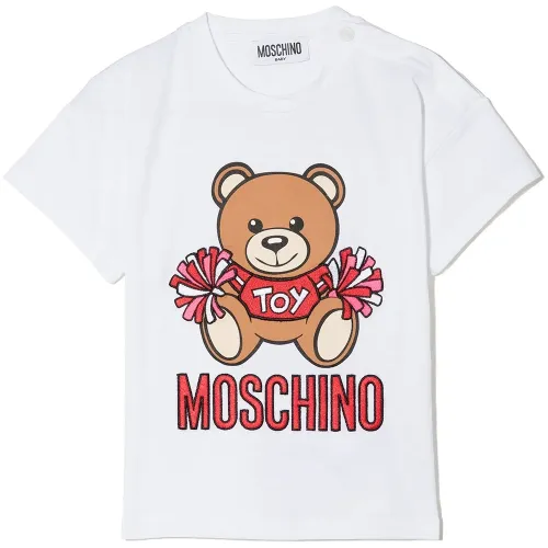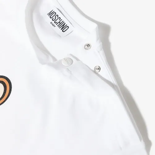 Эластичный хлопок, дизайн с медведем, логотип спереди, круглый вырез, чехол с застежкой на кнопку и короткие рукава.
