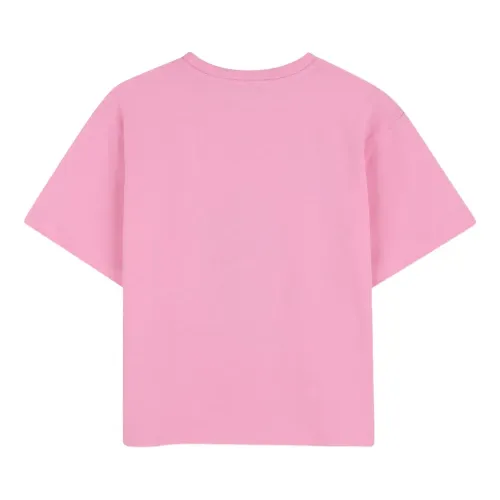 розовая футболка с круглым вырезом, короткими рукавами и графическим принтом