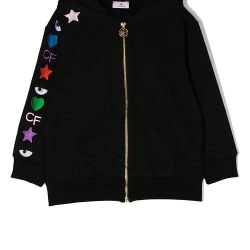 Черный/разноцветный, ткань джерси, вышивка, классический капюшон, застежка на молнии спереди и отделка в рубчик.