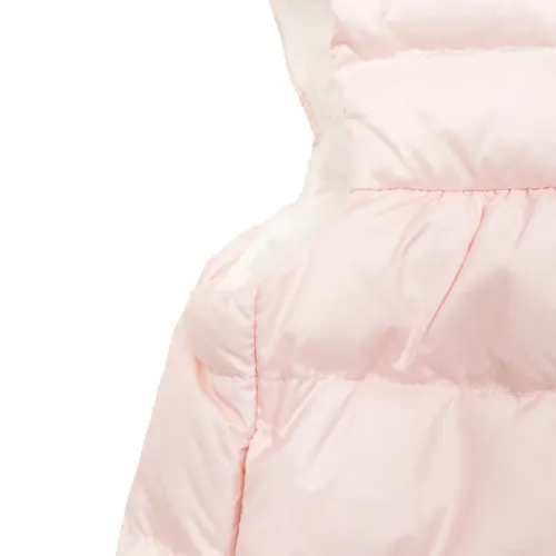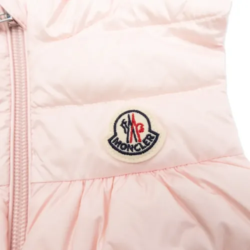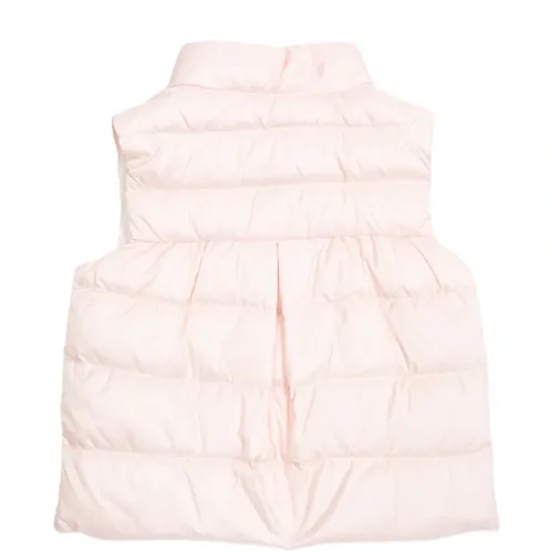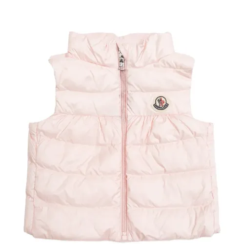 розовая стеганая модель с высоким воротником, застежкой на молнию и нашивкой с логотипом, без рукавов