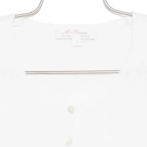 белый топ с квадратным вырезом, застёжкой на пуговицы и длинными рукавами
