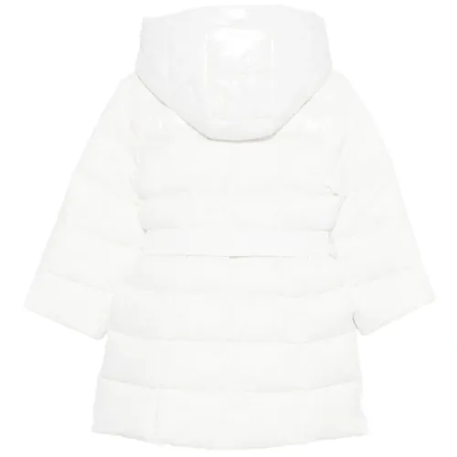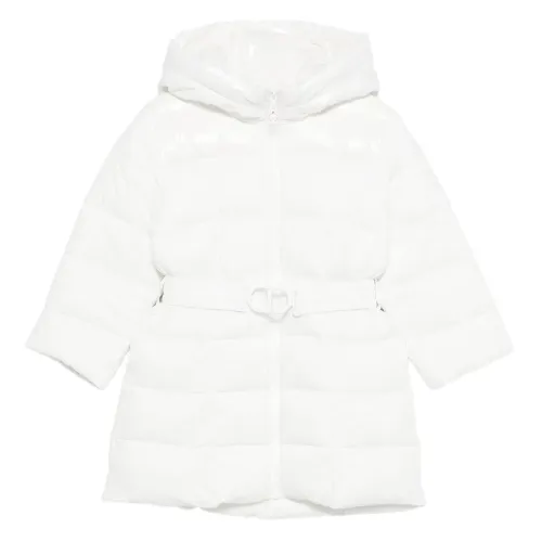 белый стеганый дизайн классический капюшон длинные рукава пояс на талии застежка на молнию