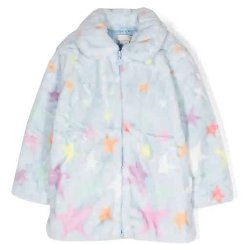 Голубой, разноцветный, искусственная овчина, принт с изображением звезд, застежка на молнии спереди, длинные рукава и прямой подол. Узнать больше о том, какие товары получают отметку «Ответственный выбор», можно из материала «Как мы оцениваем экологичность и этичность».