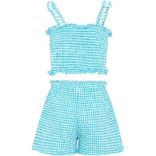 Комплект из шорт с оборками и принтом «в клетку гингем»