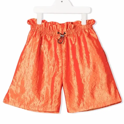 Глянцевая фактура, завышенная талия, кулиска на талии и задние карманы с листочкой. Цвет: оранжевый. . Узнать больше о том, какие товары получают отметку «Ответственный выбор», можно из материала «Как мы оцениваем экологичность и этичность».