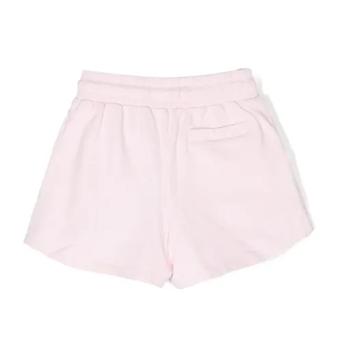 Светло-розовый, хлопок, логотип спереди, кулиска на талии, прямой подол, два кармана по бокам и задние карманы с листочкой.