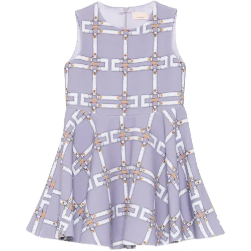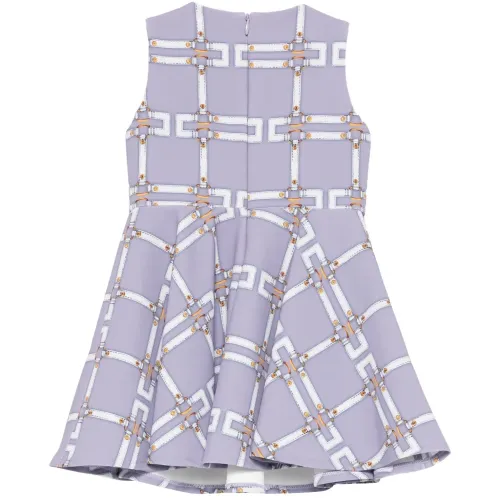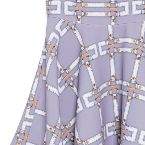 лиловое платье с узором без рукавов, круглым вырезом, застёжкой-молнией и юбкой силуэта "А"-линии