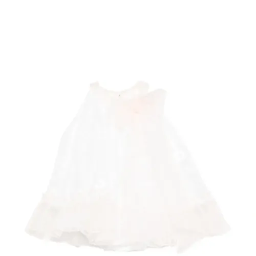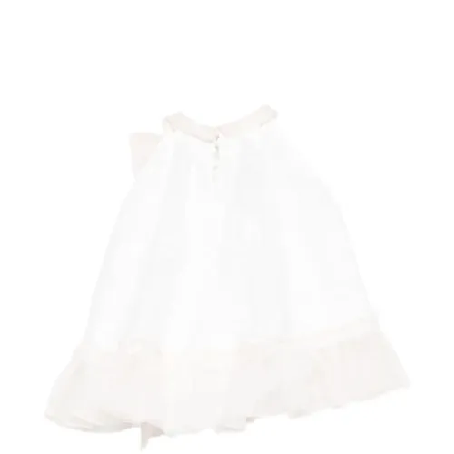 белый топ без рукавов с бантом, оборчатым подолом и застежкой на пуговицы сзади