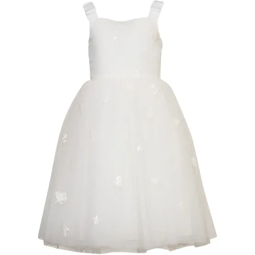 белая и золотистая аппликация, ленты-завязки, тканая конструкция, без рукавов, многослойная юбка