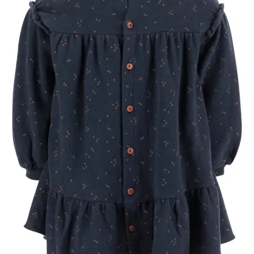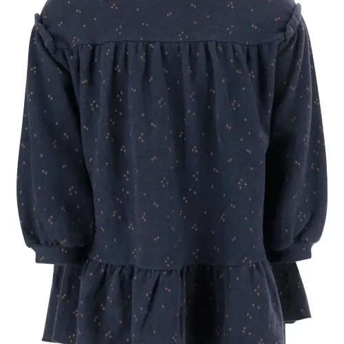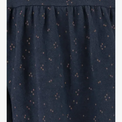 темно-синий узор «ромбы» оборки длинные рукава собранная юбка круглый вырез