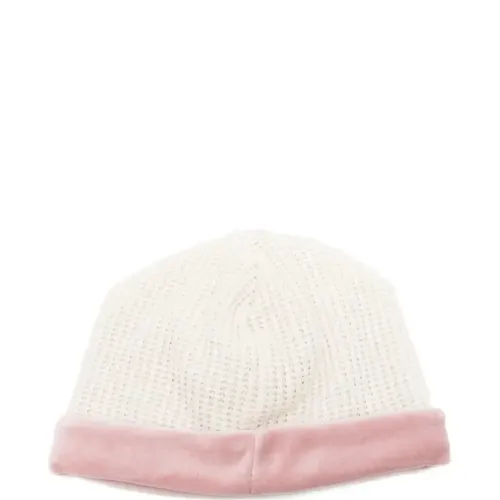 шапка облегающего кроя из вафельного трикотажа цвета экрю с розовой бархатной отделкой в стиле Off-White