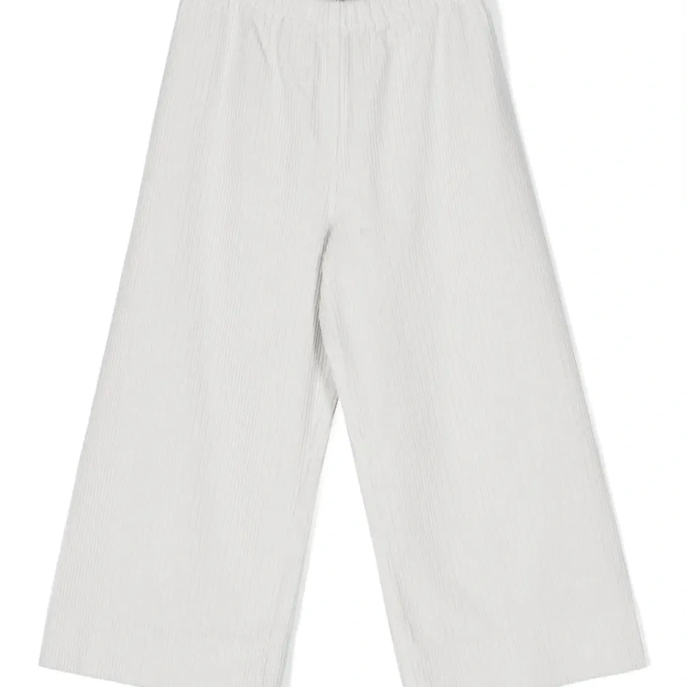 Светло-серый, эластичный хлопок, вельветовый материал, эластичный пояс и широкий крой.