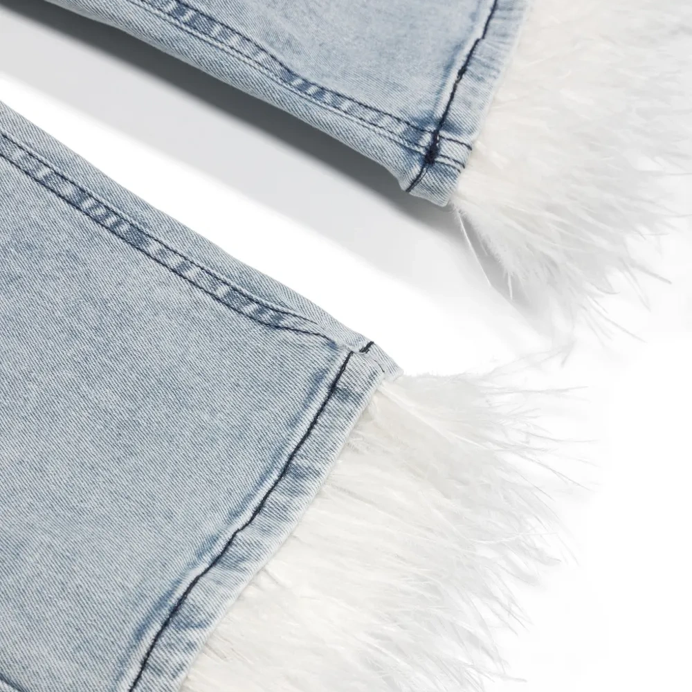Джинсы из органического хлопка с перьями