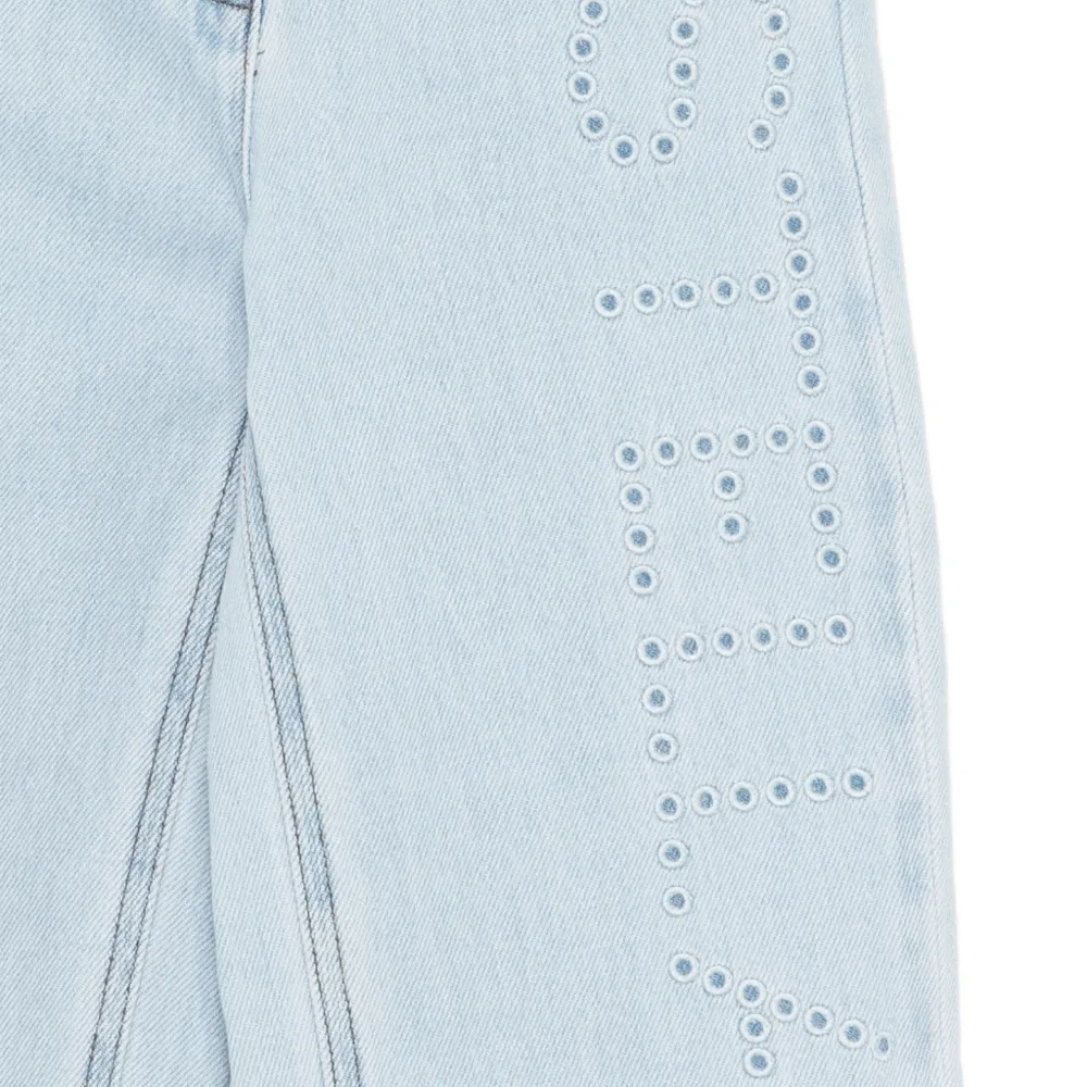 светло-голубой цвет, вышитые детали, дизайн с пятью карманами, шлевки для ремня