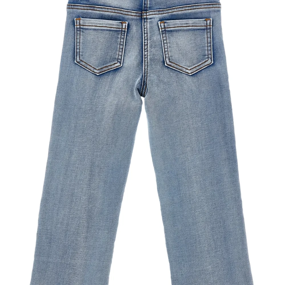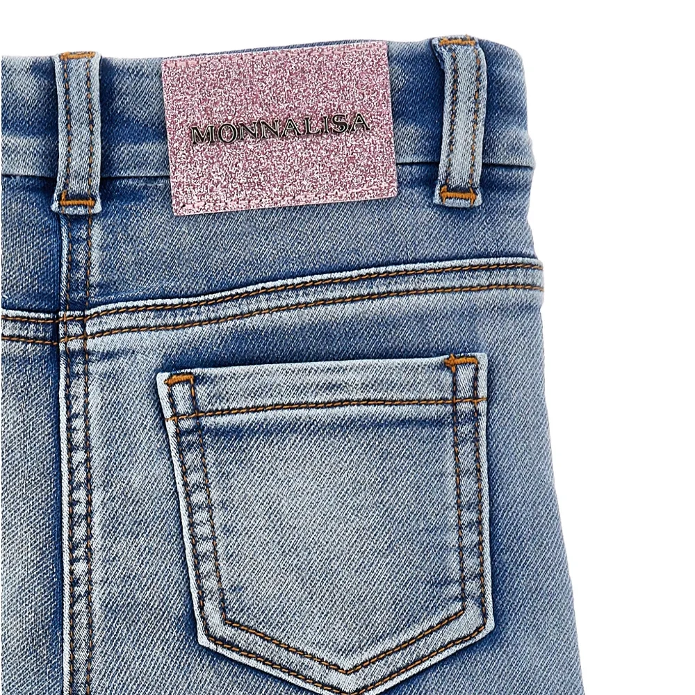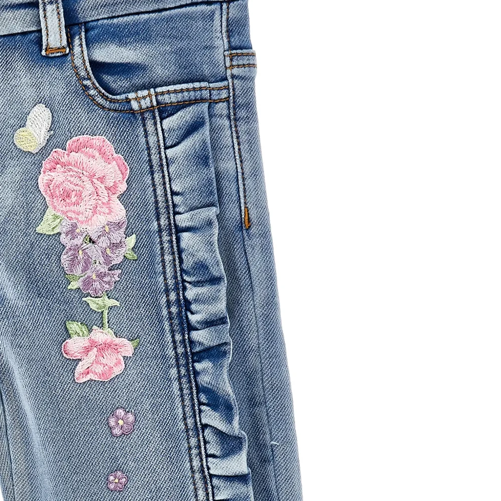 Джинсы с оборками и цветочной вышивкой
