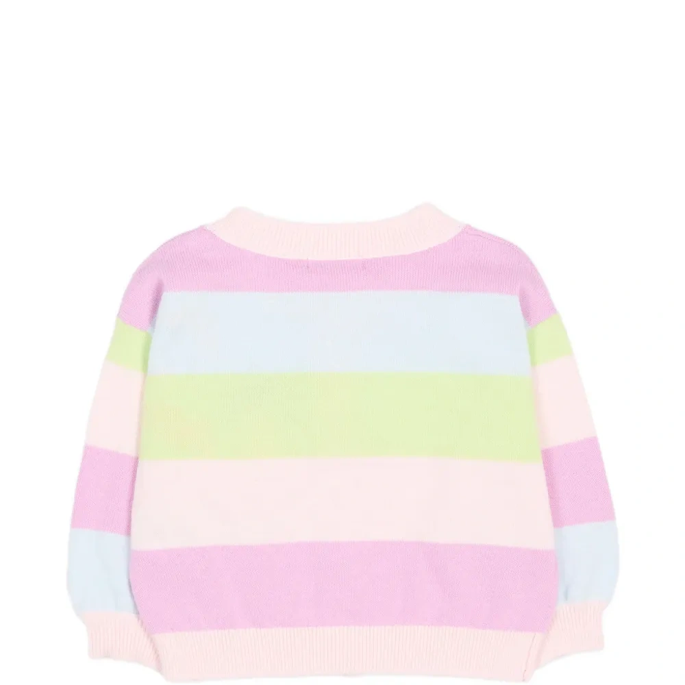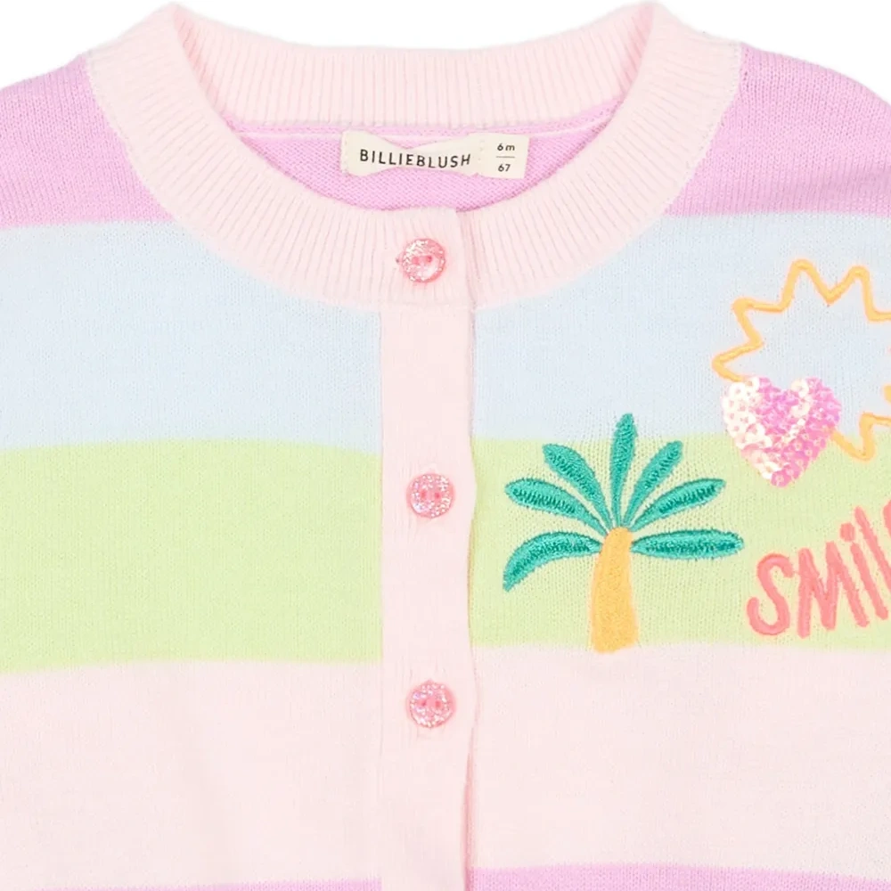 розовый многоцветный полосатый дизайн, вышитые детали, украшение пайетками, круглый вырез, застёжка на пуговицы спереди