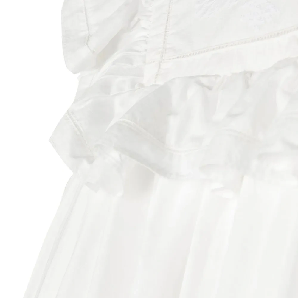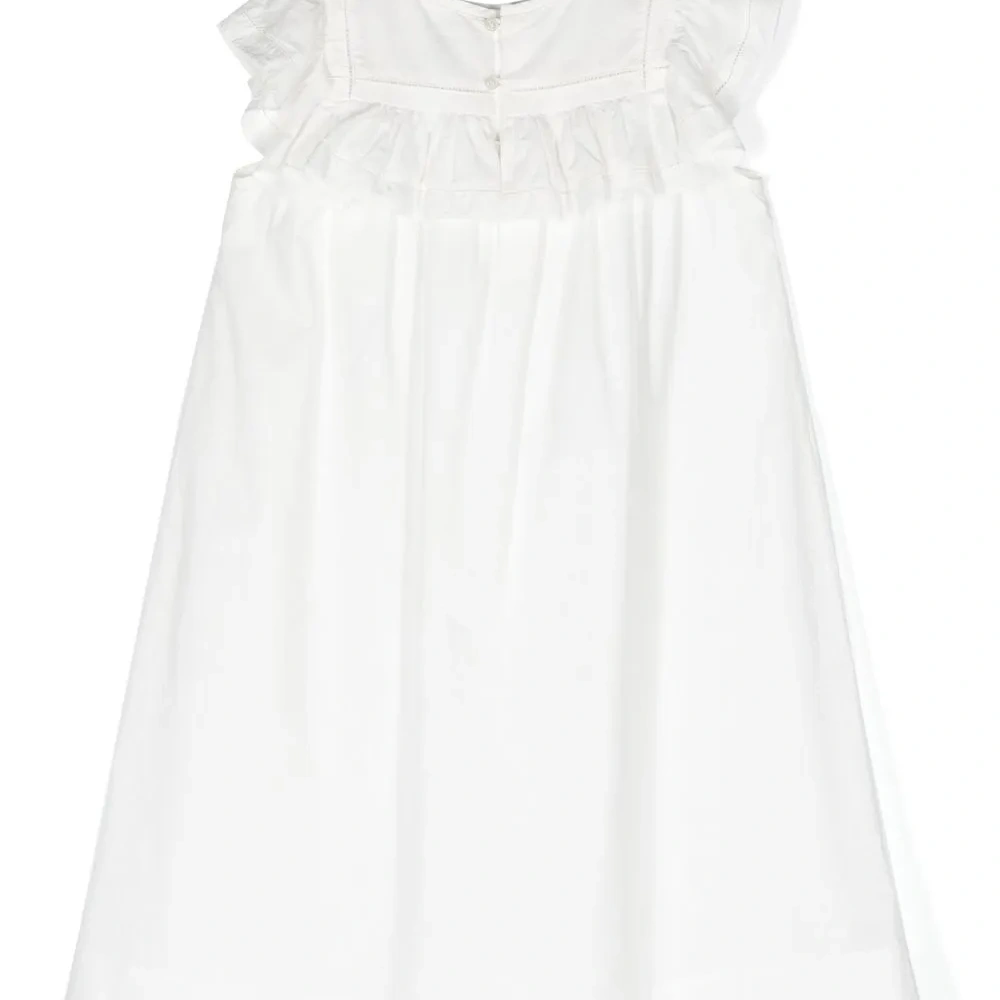 Расцветка Cloud White, хлопок, воротник с оборками, круглый вырез, без рукавов и сборка на талии.