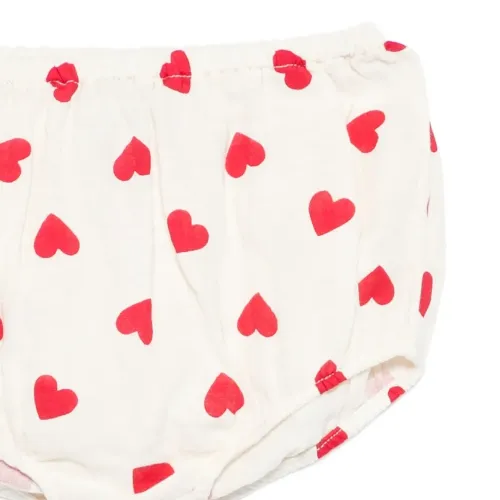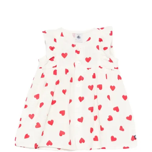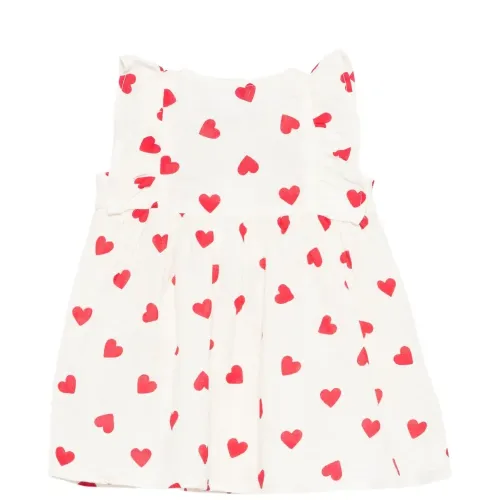 белое платье с принтом в виде сердечек, застежкой на пуговицы, без рукавов, с оборками, в комплекте блумерсы