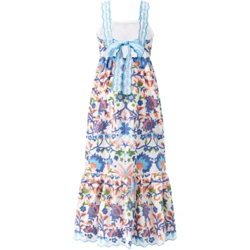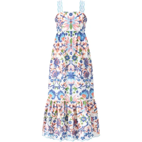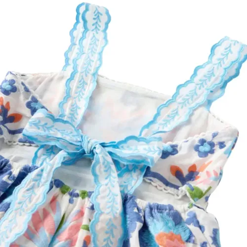 белый/разноцветный топ с цветочным принтом, фигурной отделкой по краям, бретелями на плечах и оборчатым подолом