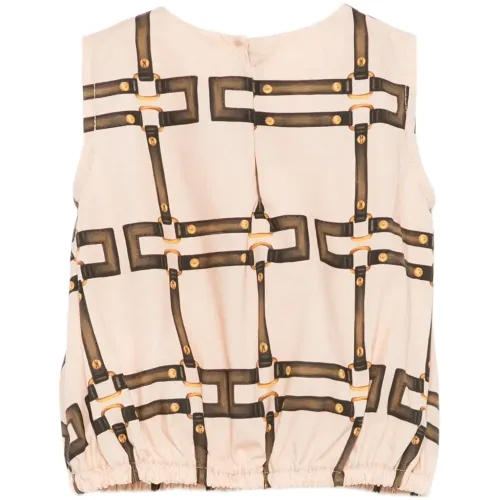 светло-розовый топ с графическим принтом, круглым вырезом, без рукавов и эластичным низом