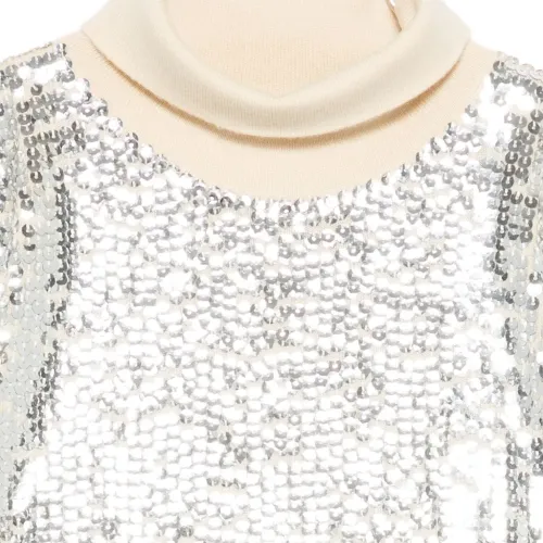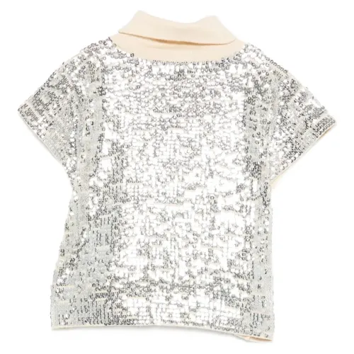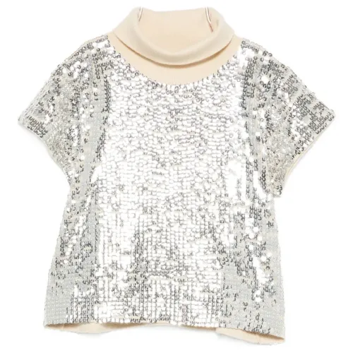 Футболка с воротником-стойкой, украшенная пайетками