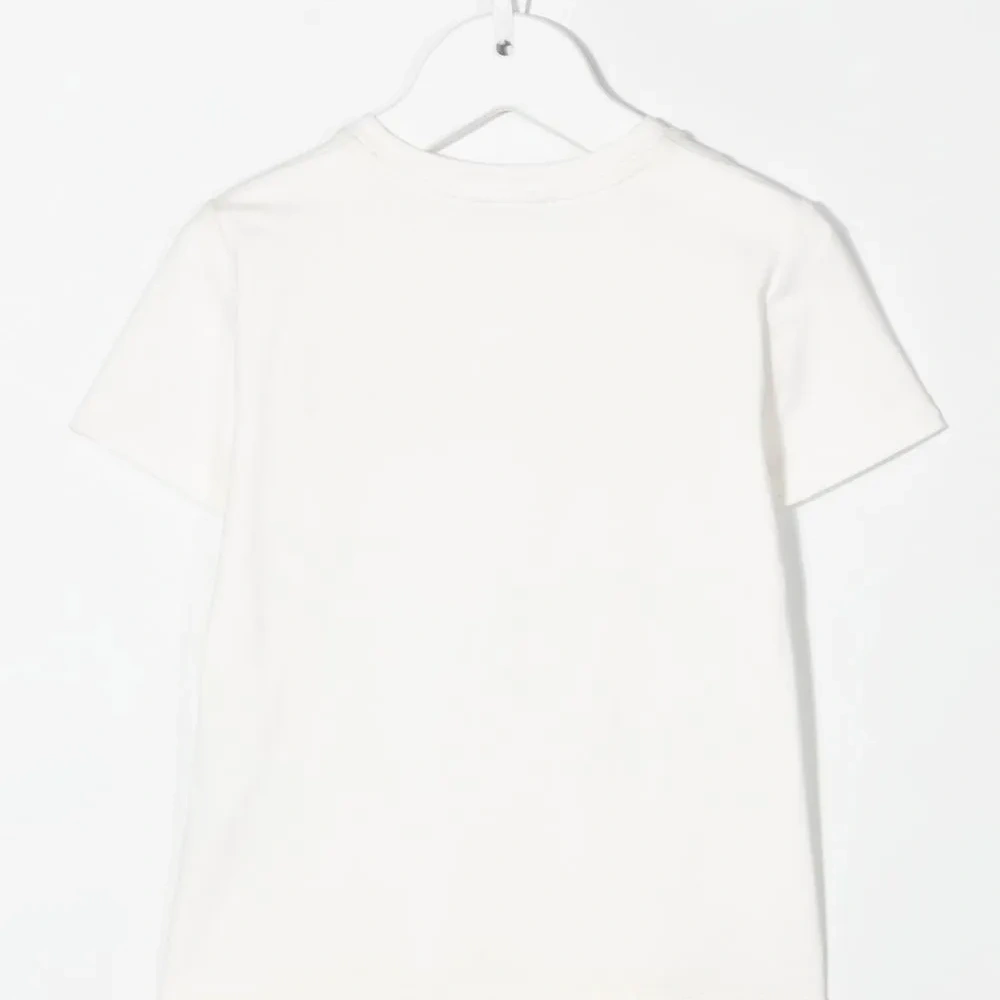 Вышитый логотип на груди, круглый вырез, короткие рукава и прямой подол. Цвет: белый.