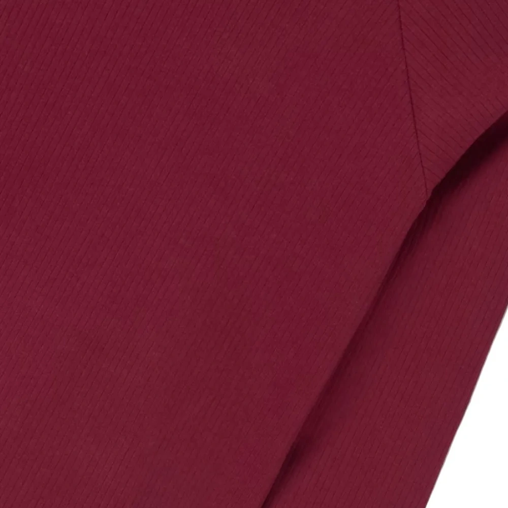 красный в рубчик, с оборками, длинные рукава, круглый вырез, с логотипом
