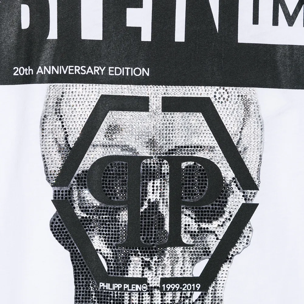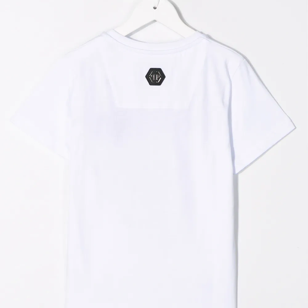 Футболка с принтом Skull от Philipp Plein Junior. Графический принт, логотип на груди, короткие рукава, прямой подол и свободный крой. Цвет: белый.