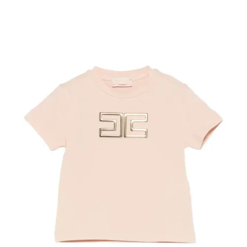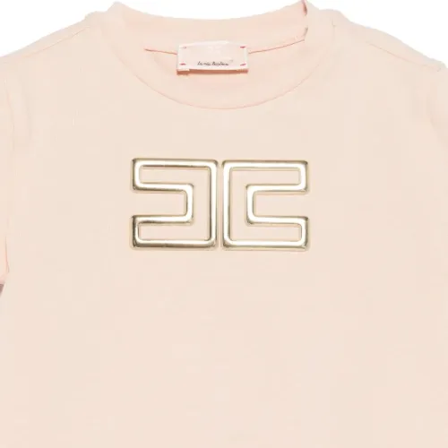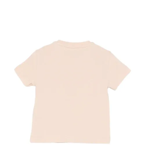 розовая хлопковая футболка с короткими рукавами, круглым вырезом и нашивкой с логотипом