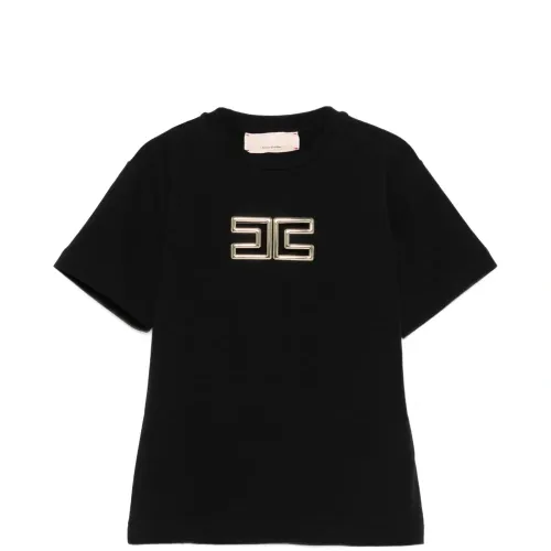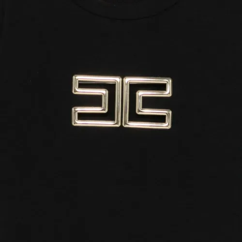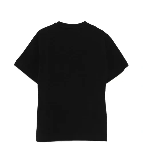 черная футболка с круглым вырезом, короткими рукавами и логотипом
