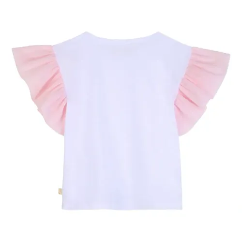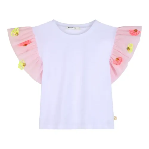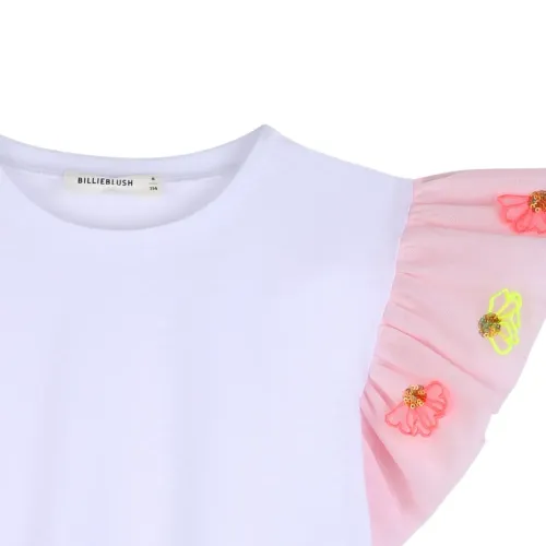 Футболка с оборками и цветочной вышивкой