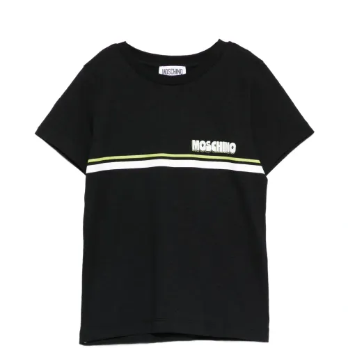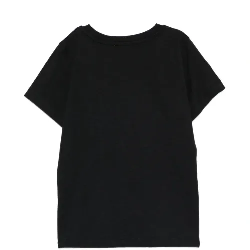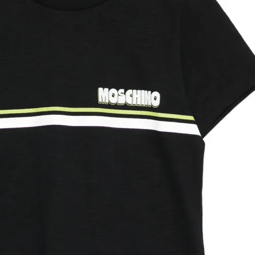 черная хлопковая футболка с круглым вырезом, короткими рукавами и полосатыми деталями