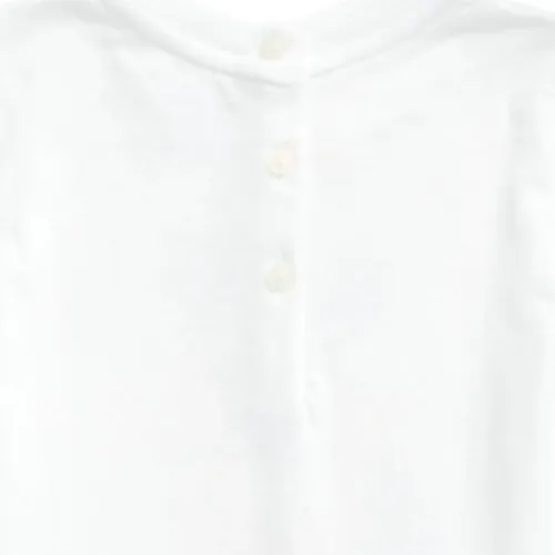 белый цвет, графический принт, круглый вырез, короткие рукава, застёжка на пуговицы сзади