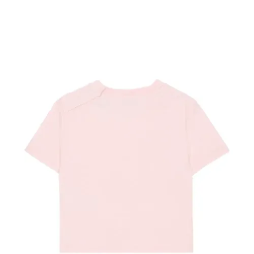 розовая футболка с логотипом, короткими рукавами и круглым вырезом