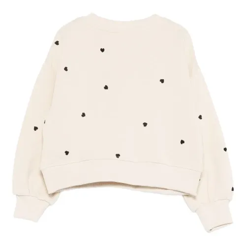 кремовый свитер с сердечком, ребристый низ, ребристые манжеты, круглый вырез, длинные рукава