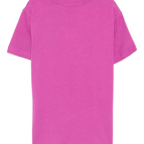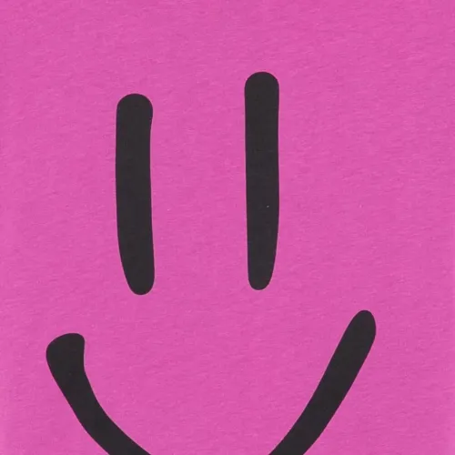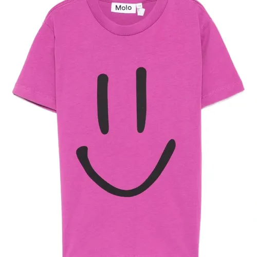 лиловая футболка с круглым вырезом, короткими рукавами и смайликом