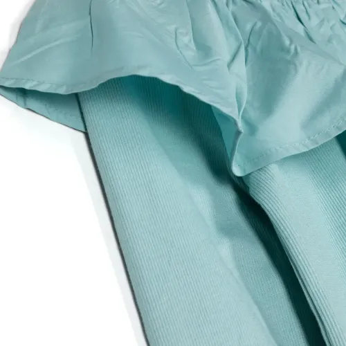 Сине-зеленый, смесовый органический хлопок, воротник с оборками, вырез-лодочка, длинные рукава, прямой подол и маленькая подвеска с логотипом. Узнать больше о том, какие товары получают отметку «Ответственный выбор», можно из материала «Как мы оцениваем экологичность и этичность».