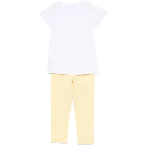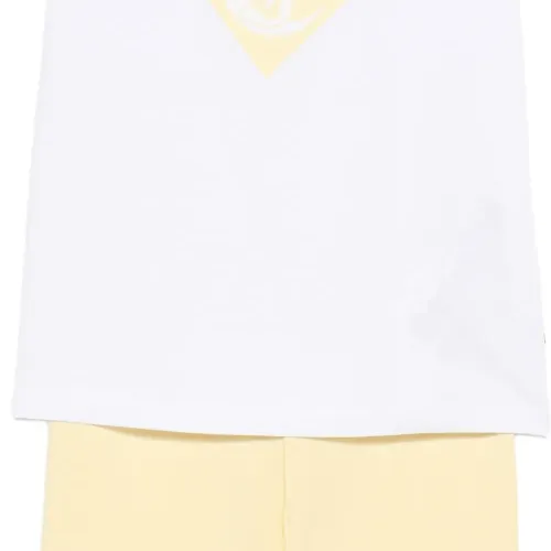 белая и жёлтая футболка с сердечным узором, оборками, круглым вырезом и короткими рукавами