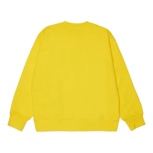 жёлтый свитшот с принтом-логотипом, круглым вырезом, длинными рукавами, ребристыми манжетами и ребристым подолом