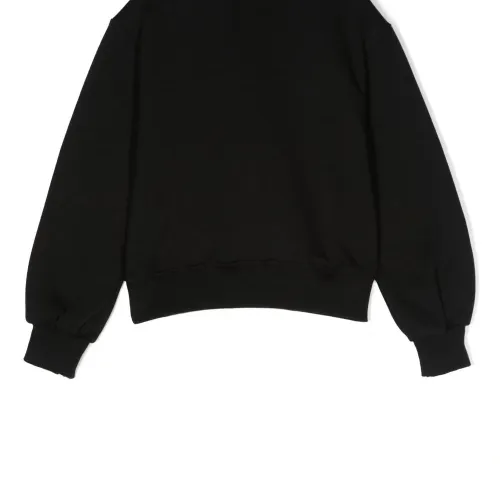 Черный, хлопок, нашивка с логотипом на груди, декор из кристаллов и длинные рукава.