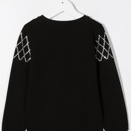 Украшения из горного хрусталя, принт с логотипом на груди, круглый вырез и длинные рукава. Цвет: черный.