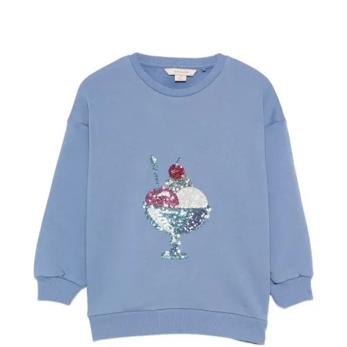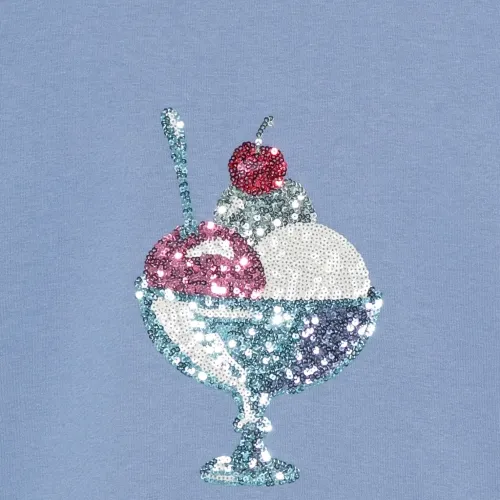 синяя отделка пайетками, круглый вырез, длинные рукава, ребристый низ, ребристые манжеты